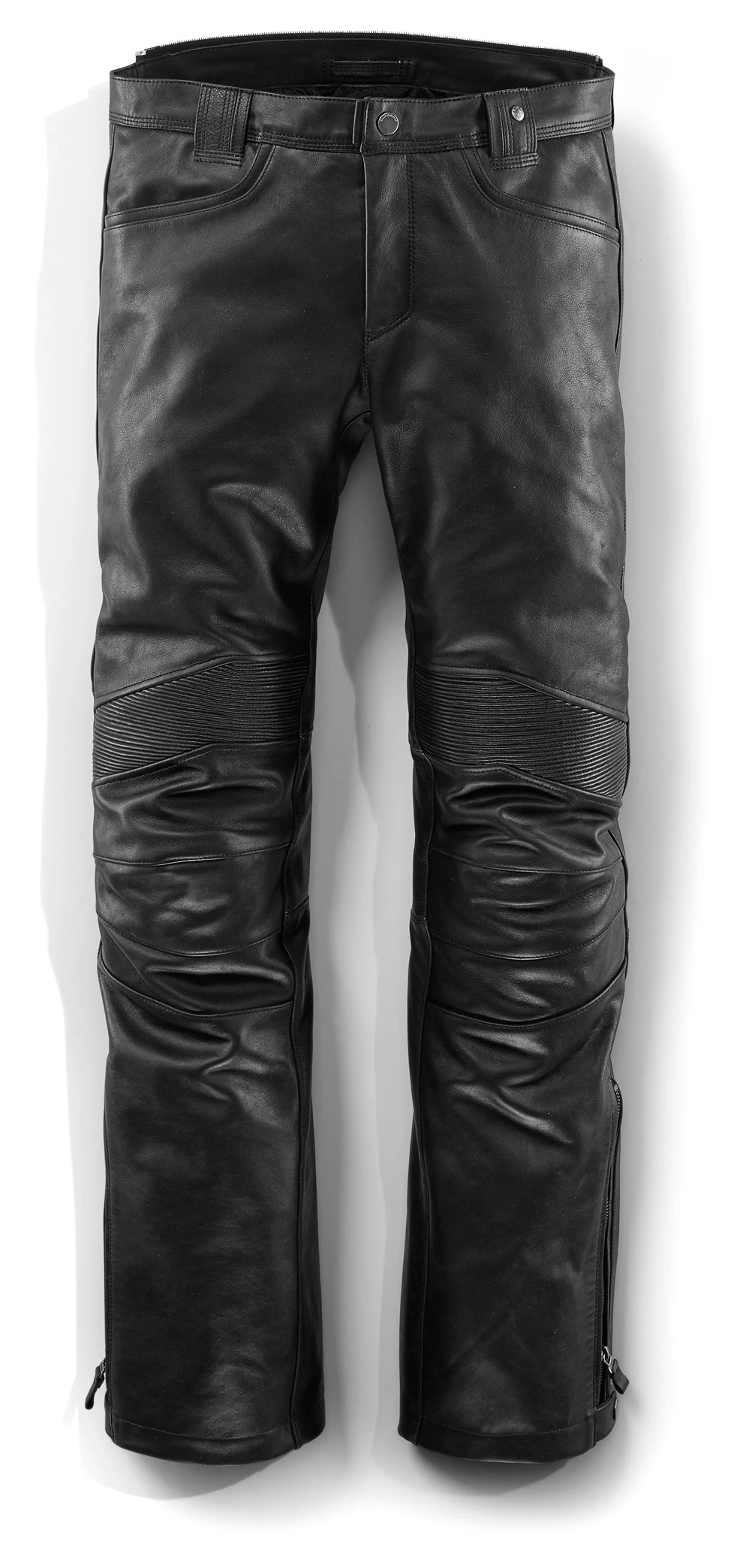 BMW DarkNite Pants are a blend of classic styling with modern day materials to create a protective motorcycle pant that looks at home on your modern classic ride. Abrasion resistant cowhide is specially treated to resist water absorption. CE level 1 armor at the knees and CE level 2 armor at the hips offer the latest in impact protection. The BMW Dark Night pants are ideal for those looking for protection and style all in one.ย