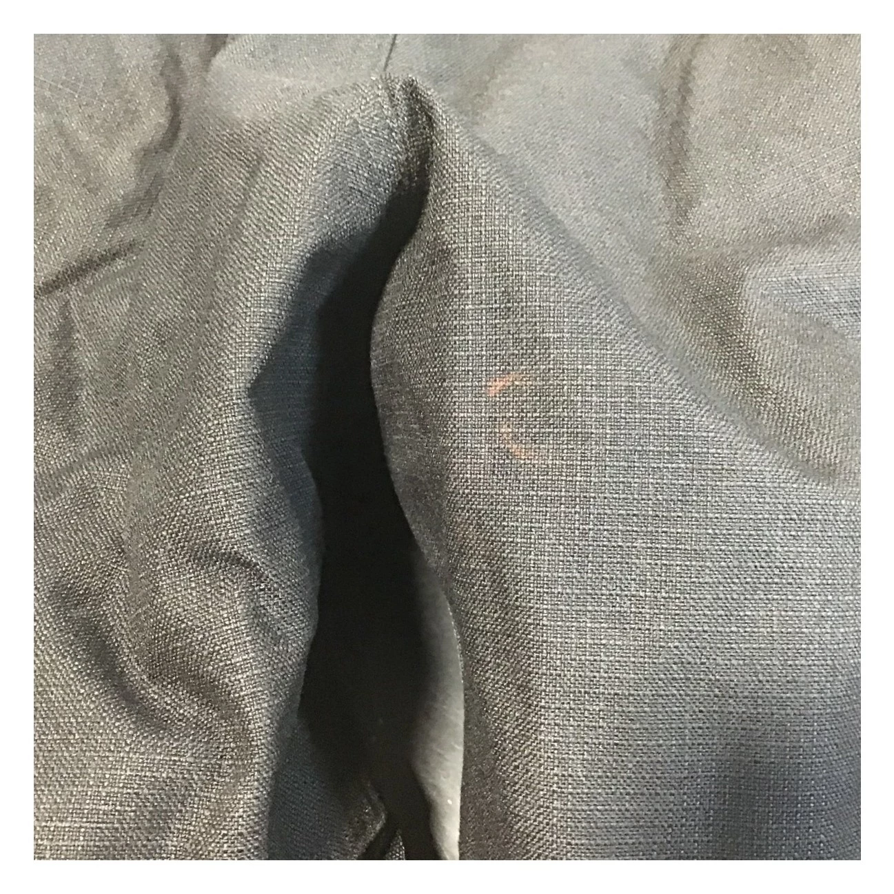 –Left knee and crotch area have reddish stains on them.