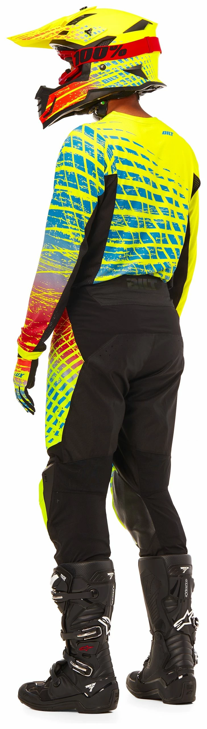 The Lux Pro Air series is BILT’s premium level offroad pant, offering more technical features and ventilation than the standard Lux Pant. The Lux Pro Air Pants start with 600D construction in main body (waist, thigh, seat, knee and shins) with strategically placed laser perforated ventilation to increase airflow in high perspiration areas and maximize airflow during heated races. Breathable stretch mesh at the back of the thigh all the way down to the ankle and molded TPR scoops at the knee also work to shed heat buildup. High strength stretch at the inner thighs, tops of knees and at hip/rear yoke allow for maximum mobility, while double layer pre-curved padded knees with full grain cow leather inner panel and abrasion resistant material to provide high durability against your knee braces.