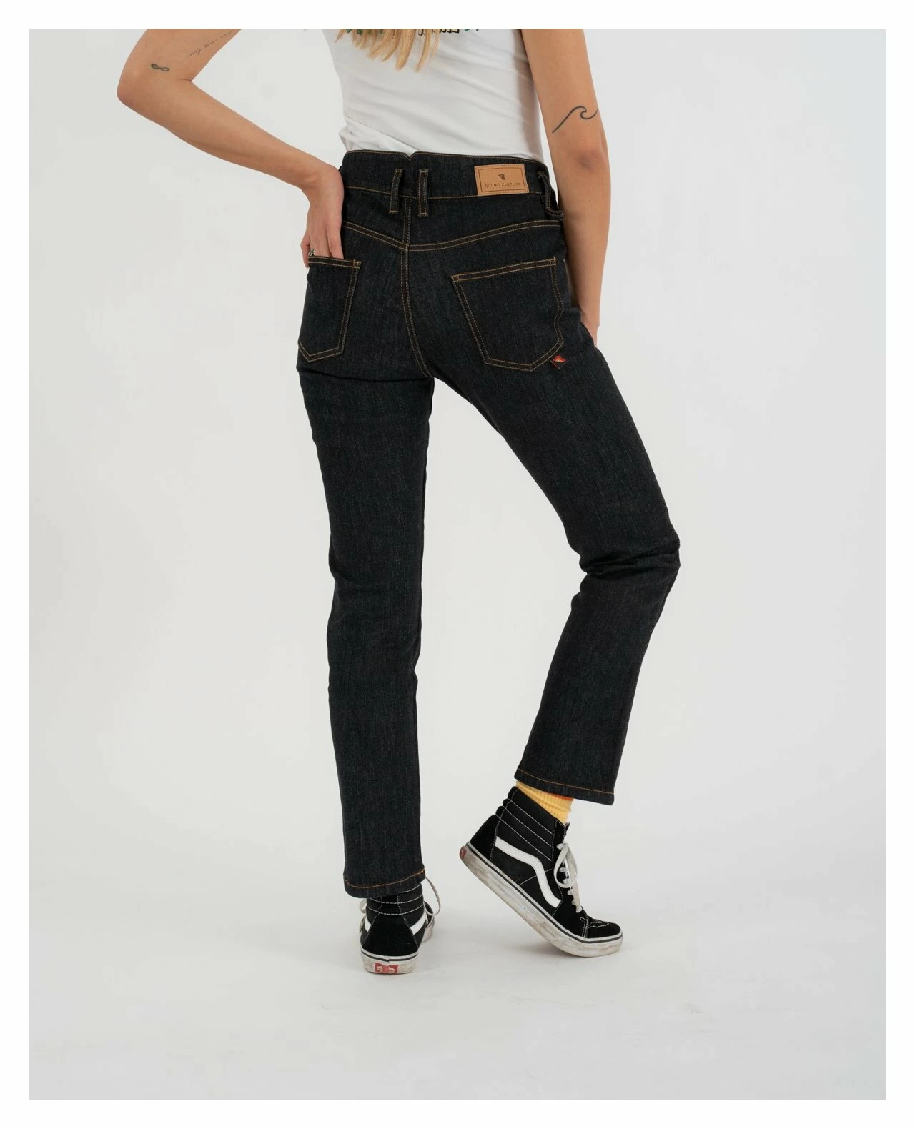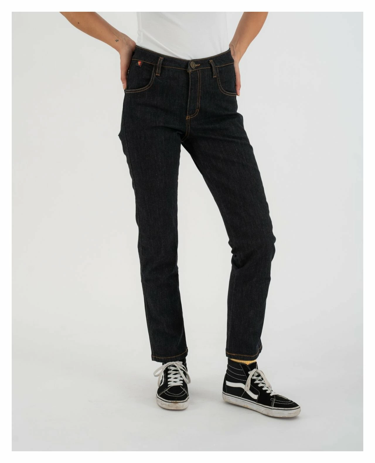 The Straight Fit Women’s Jeans are constructed with a single layer material, making them feel like everyday pants. Abrasion resistant fibers woven into the fabric make the jeans completely CE rated, while still being stylish and comfortable. Pairing together Polyethylene, Polyarylate and Aramid fibers make the pants stronger than steel with a very high melting point, transmitting very little heat in the event of a slide.ย Abrasion-resistant motorcycle jeans for everyday wear with a raw look that will take on an individual patina over time.