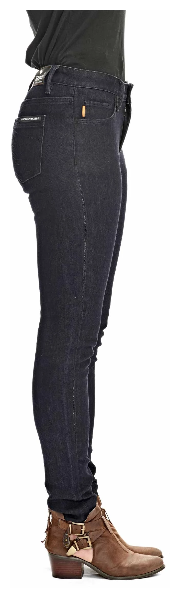 Saintโs Women’s Stretch Denim Jean is cut right and woven with a unique double warp beam allowing them to weave the worldโs strongest fiber, Dyneema UHMWPE,ย in the warp and weft while having a denim face.ย Designed by perfectionists, this hard wearing performance jean enables 180-degree stretch movement along with Dyneema blended yarns creating a jean that is the perfect balance between strength and high street style.