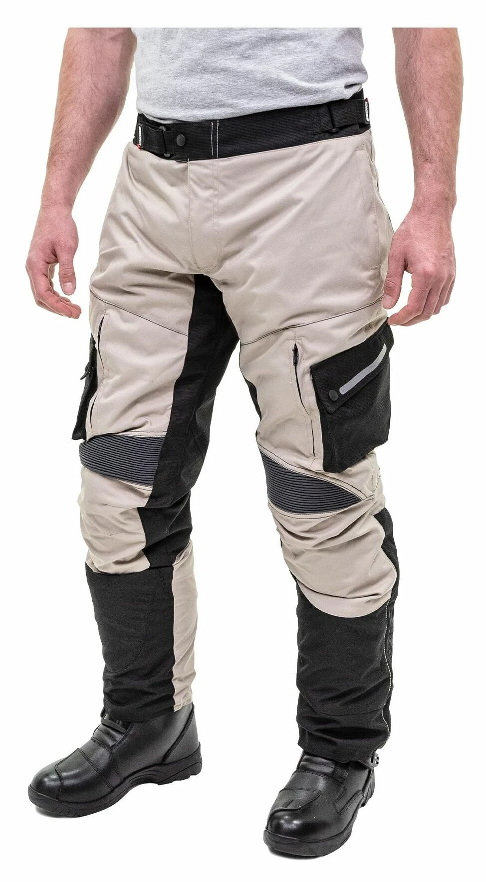 - Stretch panels above knees for added comfort in the riding position